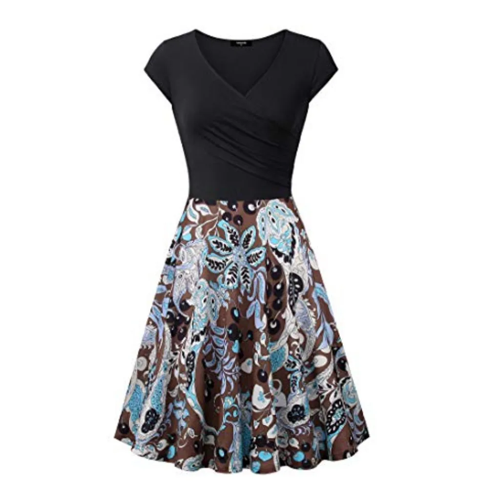 Vrouwen Korte Mouw Cross V Hals Jurken Vintage Elegante Uitlopende