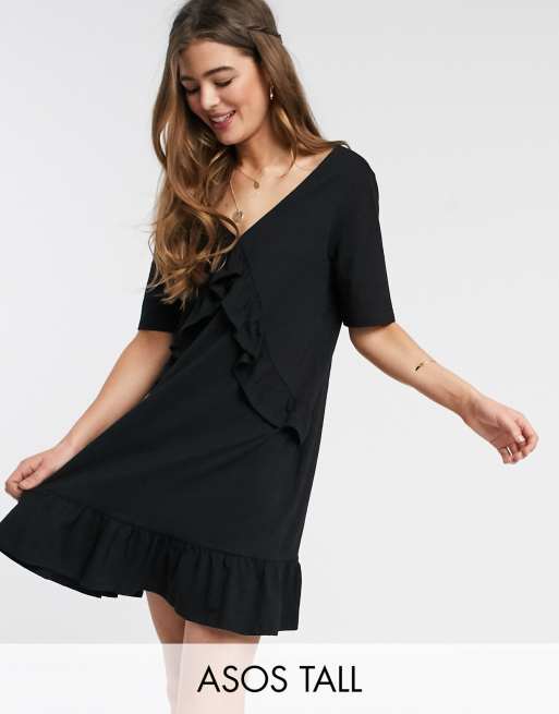 Asos Design Tall Aangerimpelde Jurk Met V Hals En Ruches In