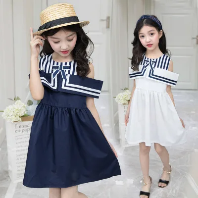 2018 Robe Fille 10 Ans Girl Summer Dress White Blue Jurkjes