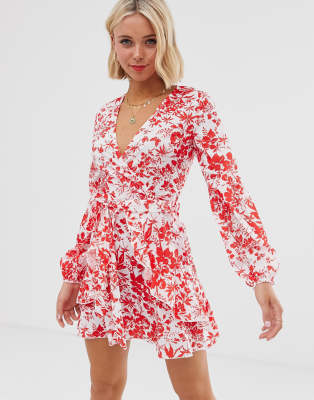 Parisian Jurk Met Lange Mouwen En Rode Bloemenprint Asos