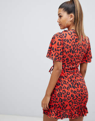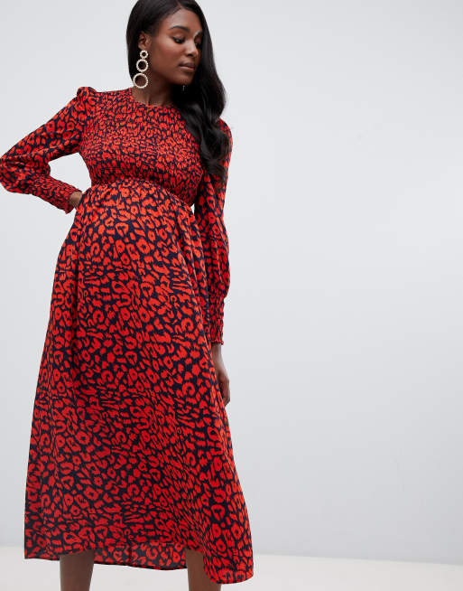 Queen Bee Midi Jurk Met Lange Mouwen In Rode Luipaardprint Asos