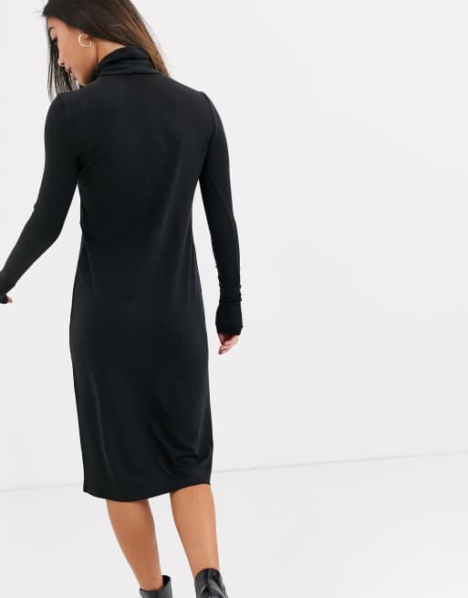 Vero Moda Petite Aware Jersey Midi Jurk Met Col In Zwart Asos