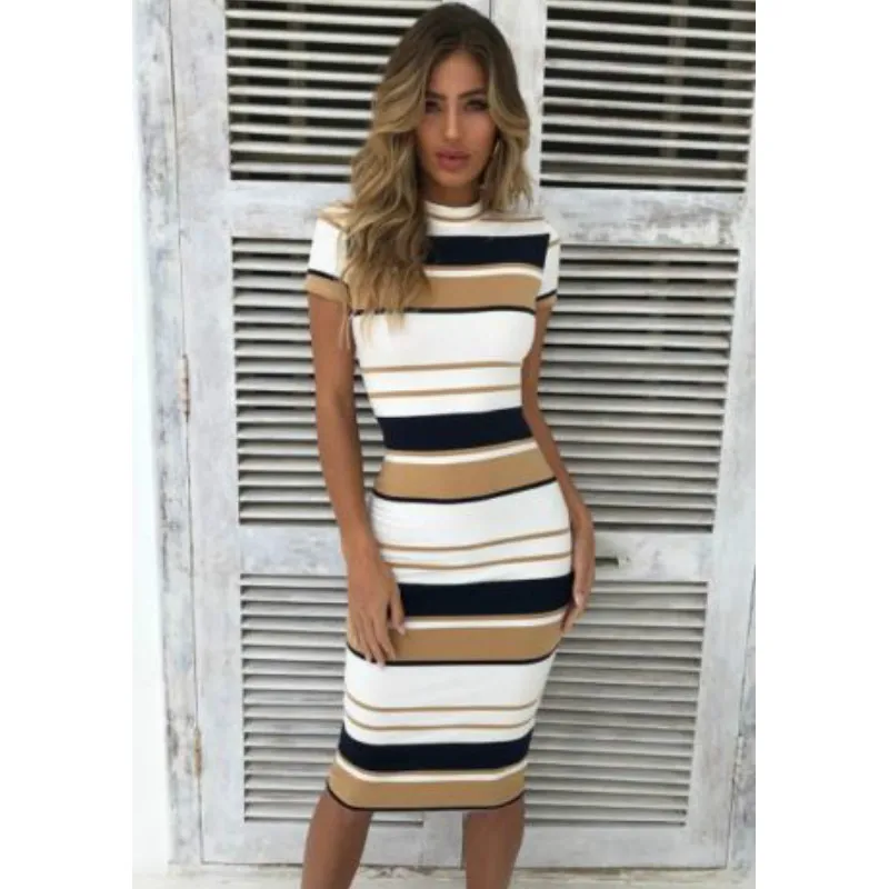 Vrouwen Zomer Streep Bodycon Jurk Vestidos Korte Mouw Dames Knie