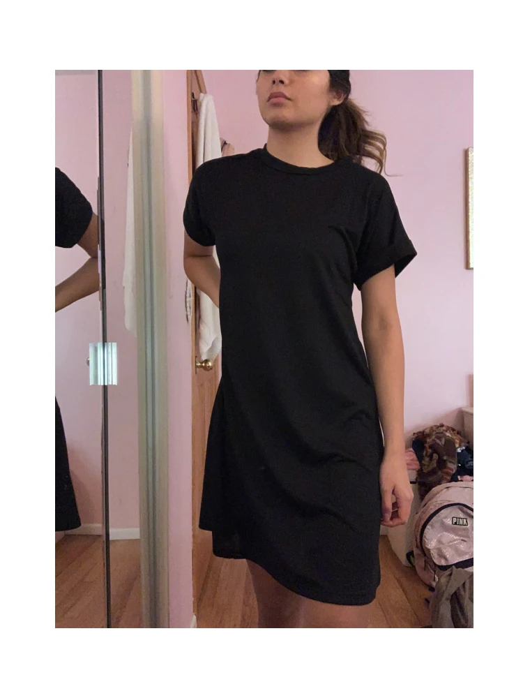 Dotfashion Opgerolde Mouwen Tee Shift Korte Jurk 2019 Zwarte Ronde