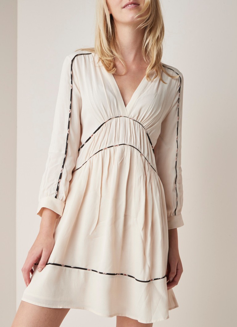 Ba Sh Franny Mini Jurk Van Crepe Met Contrasterende Bies Beige