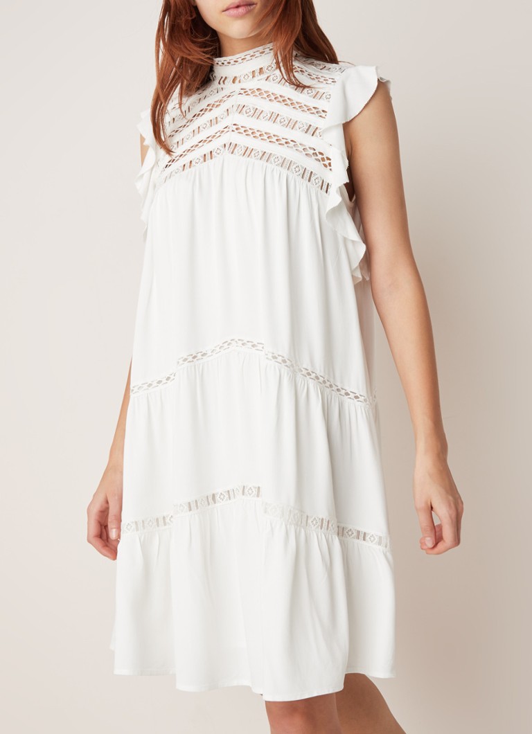 Ba Sh Zenna Mini Jurk Met Opengewerkt Kant Gebroken Wit De