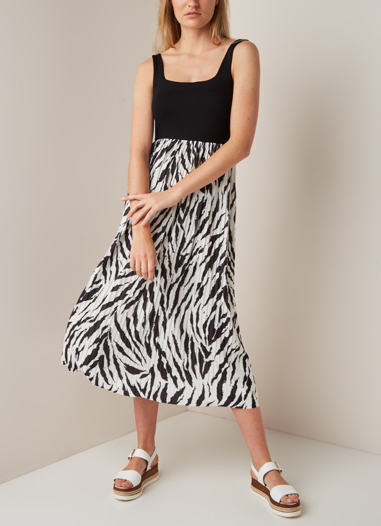 Warehouse Maxi Jurk Met Plisse En Zebradessin De Bijenkorf