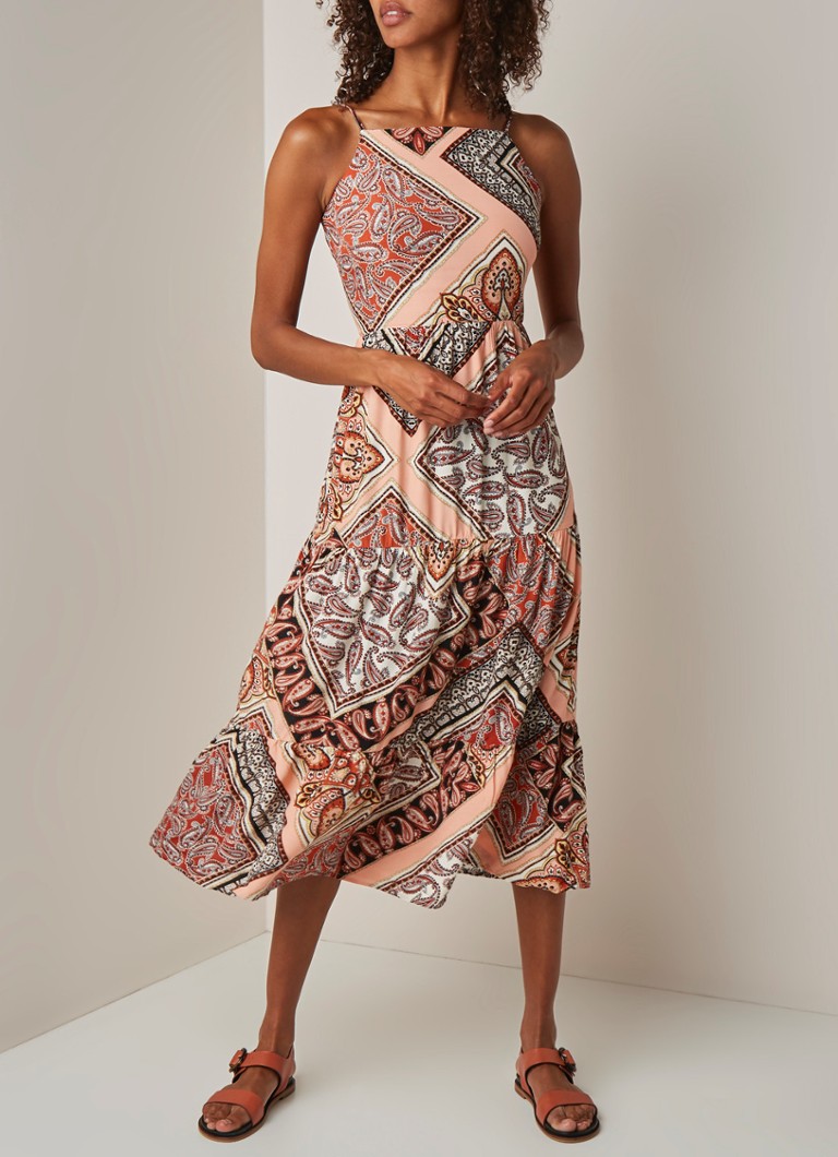 Warehouse Mouwloze Midi Jurk Met Paisleydessin Zalmroze De