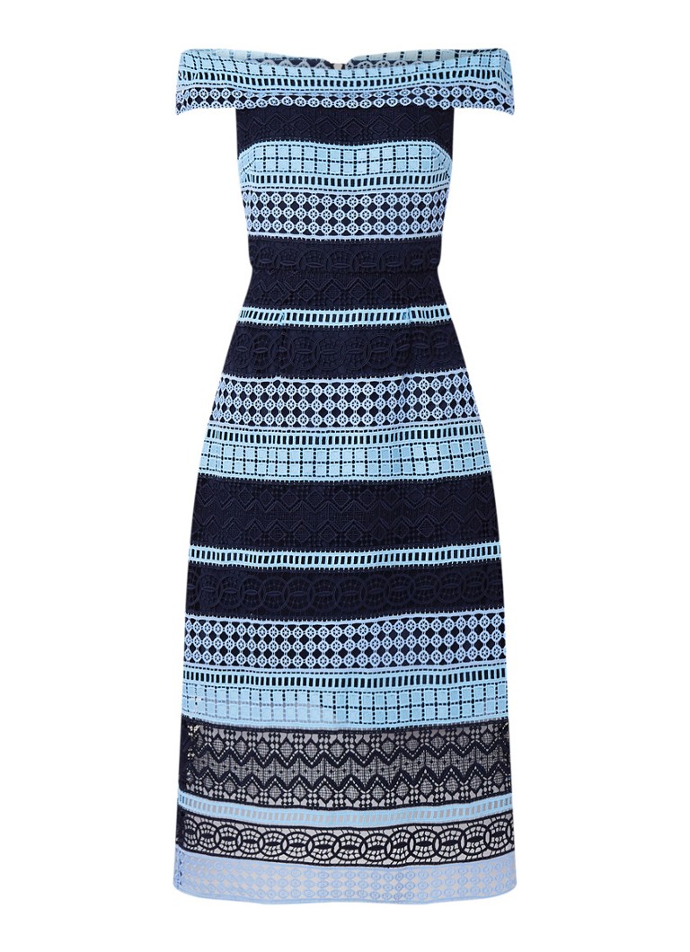 Ted Baker Off Shoulder Midi Jurk Van Guipure Kant Blauw De