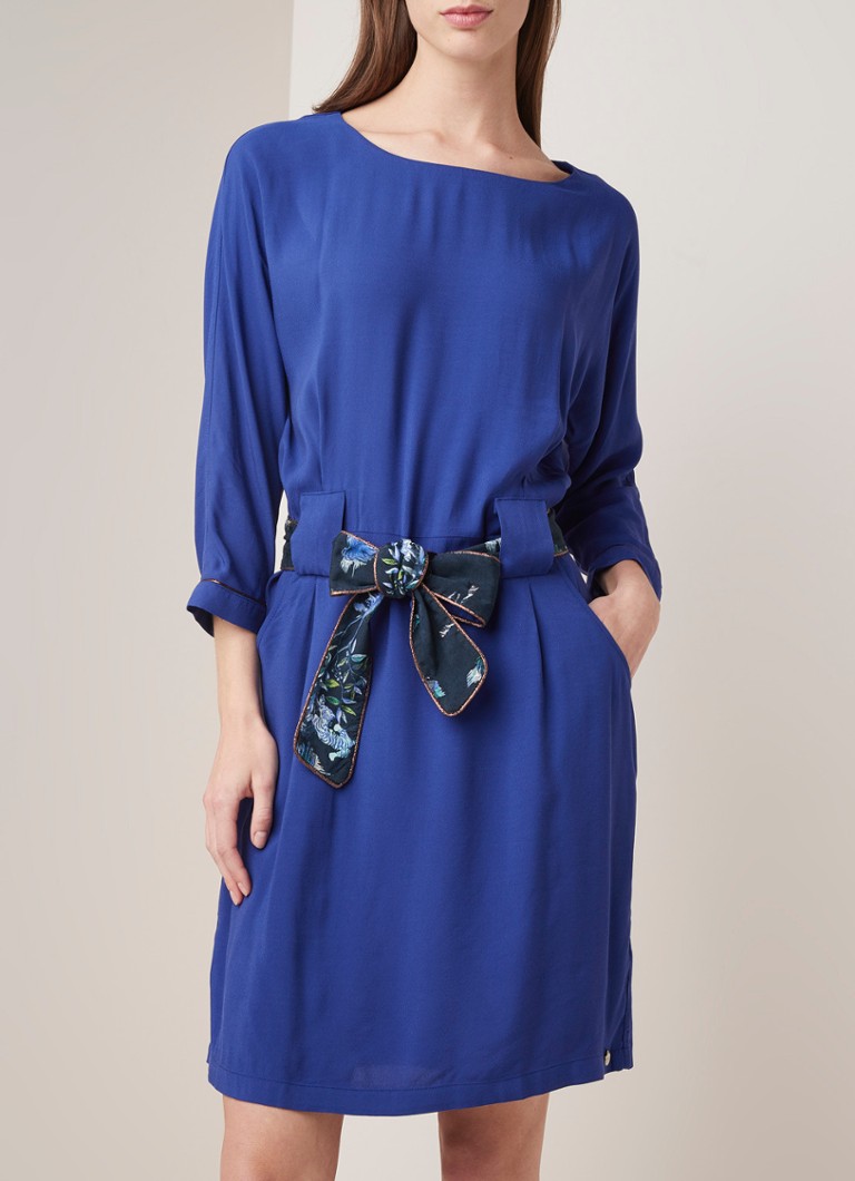 Pom Amsterdam Brilliant Midi Jurk Met Strikceintuur Blauw De