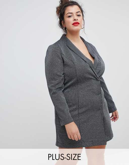 Vero Moda Curve Glitter Blazer Mini Dress In Silver Asos