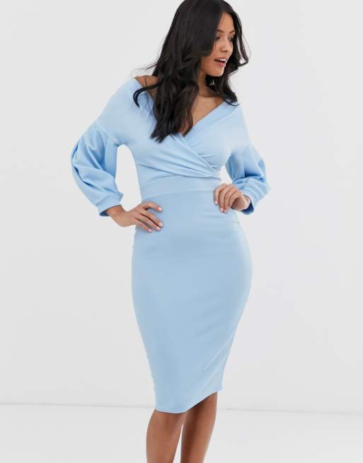 Beautiful Light Blue Knee Length Midi Bandage Dress