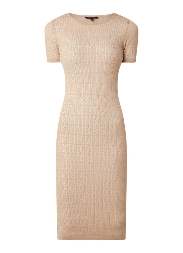Nikkie Logo Bodycon Midi Jurk Met Ingebreid Logodessin Camel