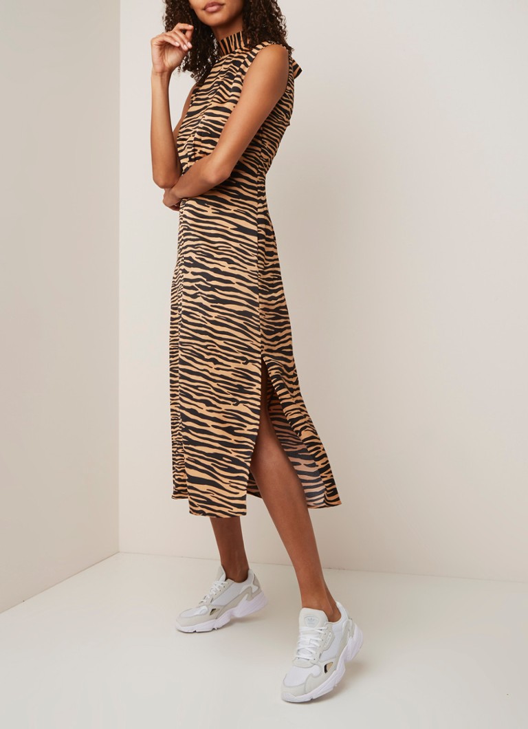 Warehouse Maxi Jurk Met Zebradessin En Cut Out Bruin De Bijenkorf
