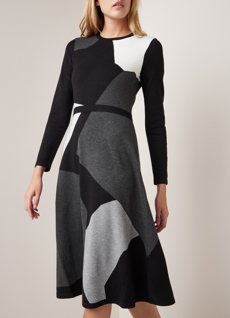Phase Eight Fran Fit Flare Trui Jurk Met Colour Blocking Grijs