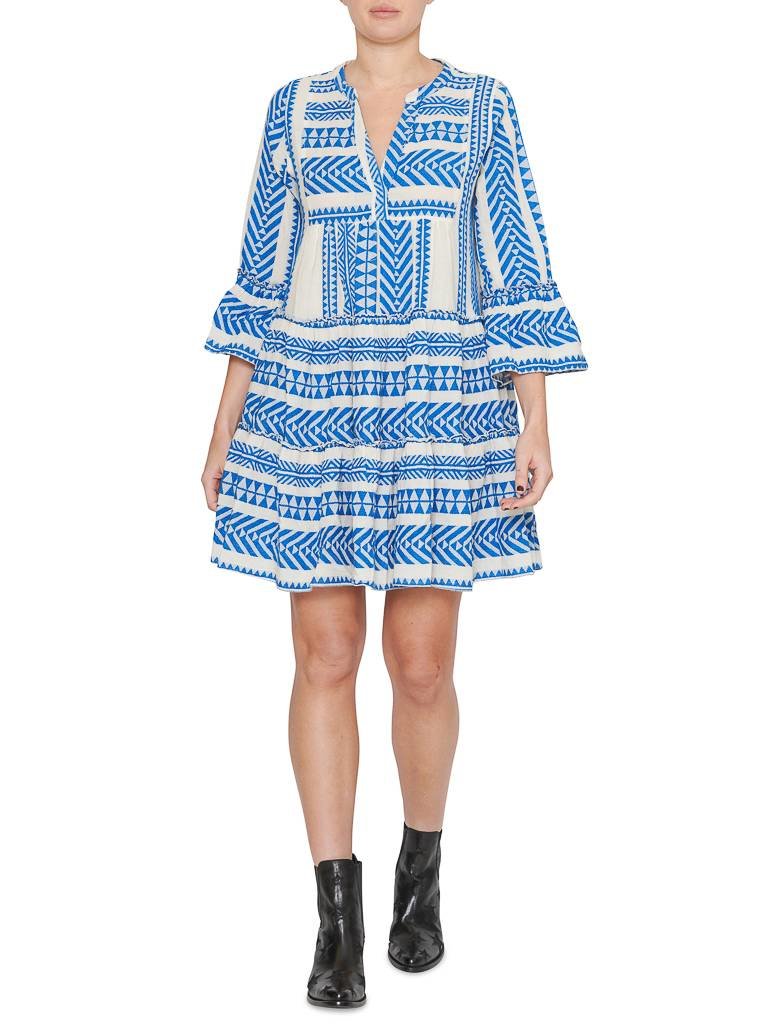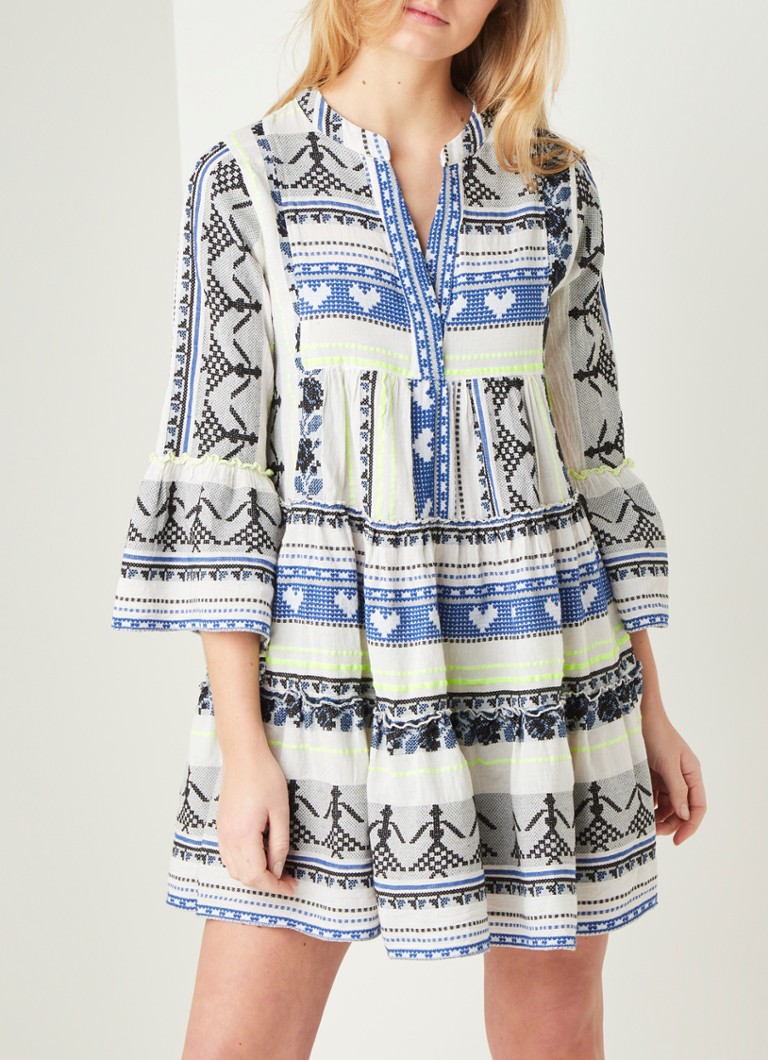 Devotion Midi Jurk Met V Hals Met Pofmouw En Dessin Blauw De