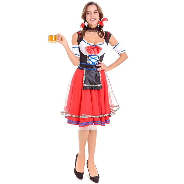 Rode Duitse Bier Meisje Outfit Volwassen Beierse Dirndl Jurk