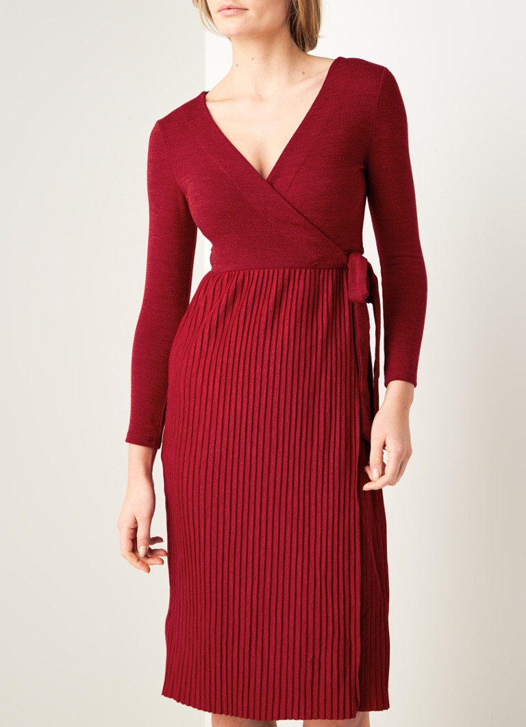 Donkerrood jurk. Van rode a lijn jurken tot zomerjurken en maxi jurken. Draag de jurk over een coltrui voor een sophisticated uitstraling. Op de middel zit een uitneembare riem. Staat prachtig onder zowel een gilet of een vest als solo met een statement.