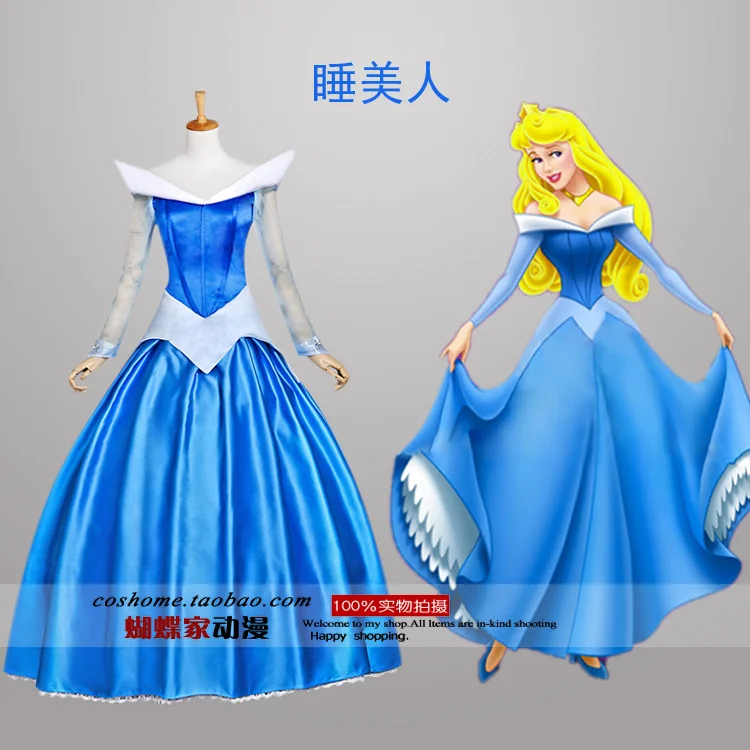 Gratis Verzending Doornroosje Aurora Prinses Coaplay Blauwe Jurk