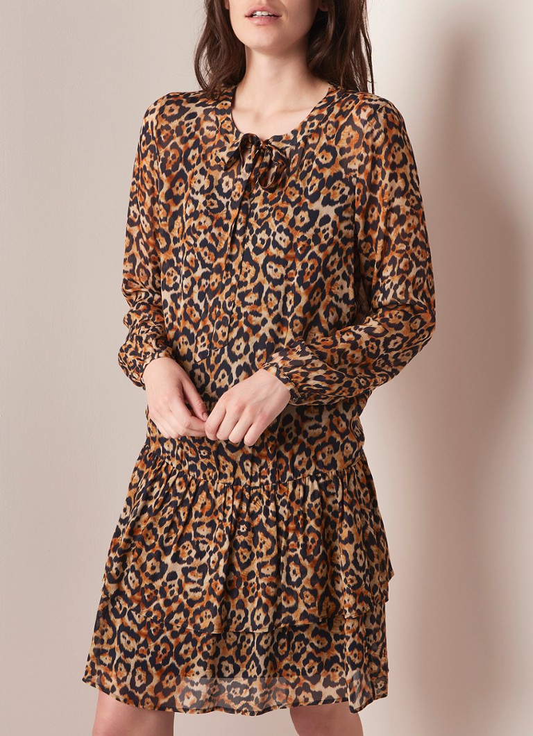Expresso Hilly Midi Jurk Met Luipaarddessin En Volant Roestbruin