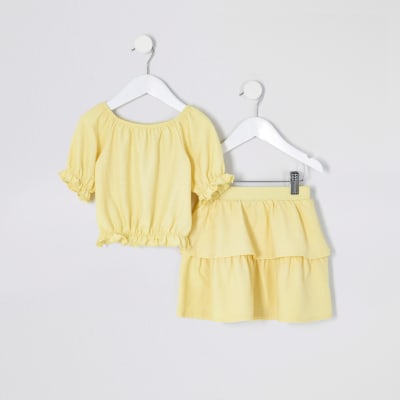 Mini Gele Jurk Met Pofmouwen Voor Meisjes River Island