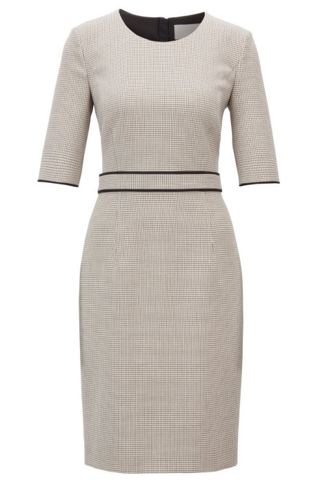 Boss Geruite Jurk Van Stretchmateriaal Met Kortere Mouwen