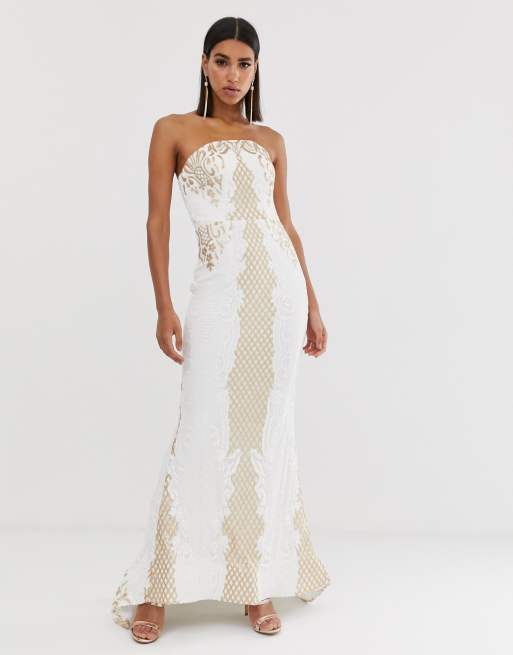 Bariano Lange Jurk Met Lovertjes En Sleep In Wit En Goud Asos