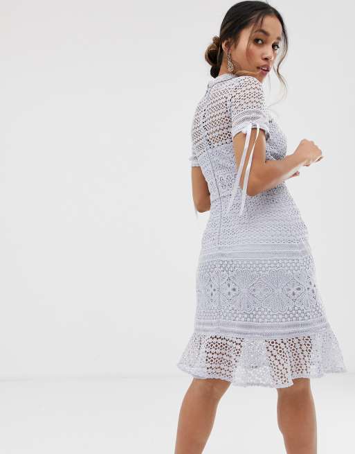 Chi Chi London Petite Kanten Jurk Met Ruches In Grijs Asos