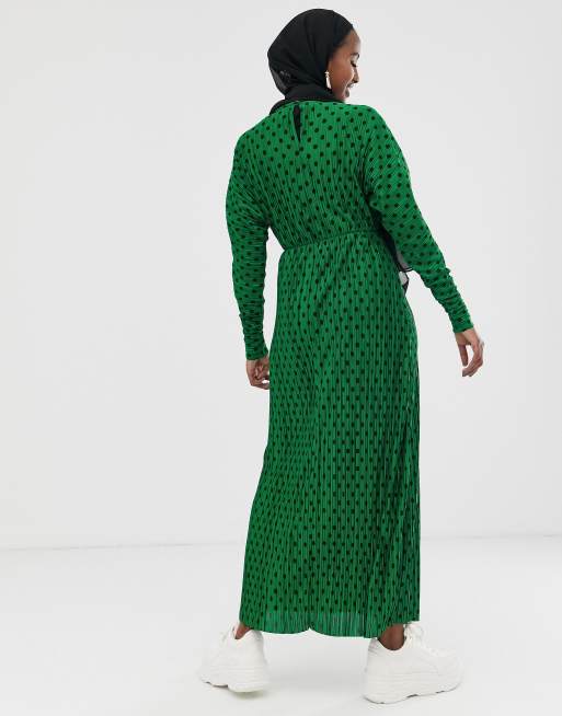 Cecilie copenhagen dea jurk met stippen groen asos design lange plisse jurk in groene stippen.