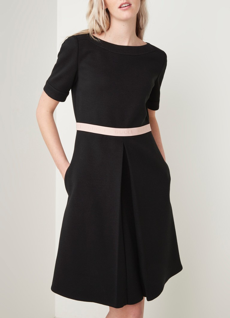 Gucci Midi Jurk In Wolblend Met Logoband Zwart De Bijenkorf