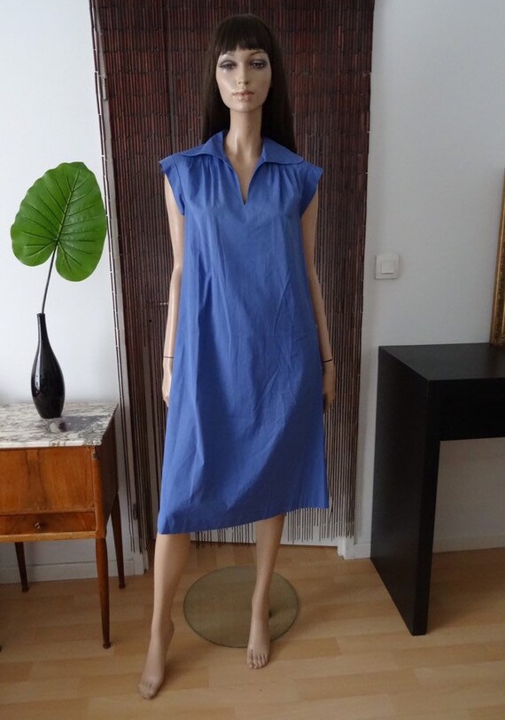 Vintage Jurk Miss Helen Lavendel Blauwe Kraag 70 S Maat 38 Etsy
