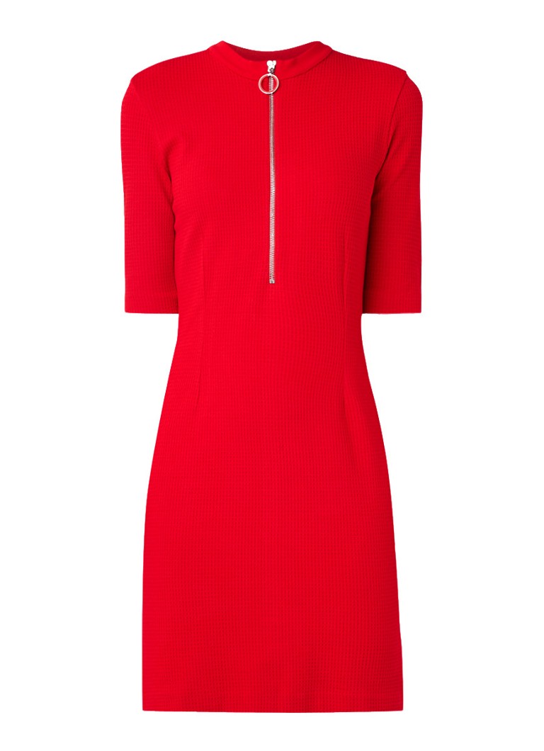 Hugo Boss Niela Fijngebreide Jurk Met Halve Rits Rood De Bijenkorf