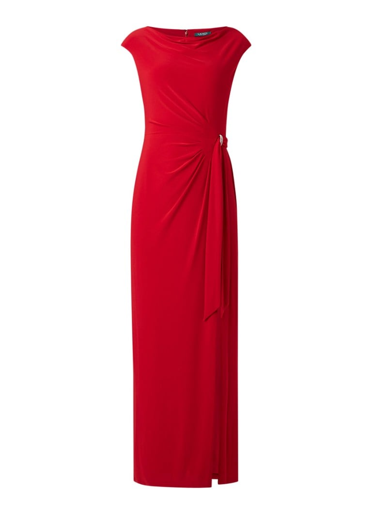 Ralph Lauren Jersey Maxi Jurk Met Strikceintuur En Split
