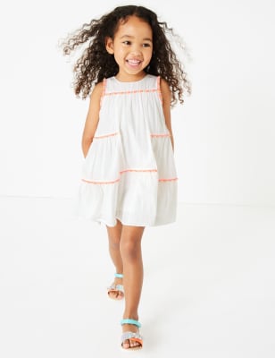 Katoenen Jurk Met Pompons 2 7 Jaar Jurken Marks And Spencer Nl