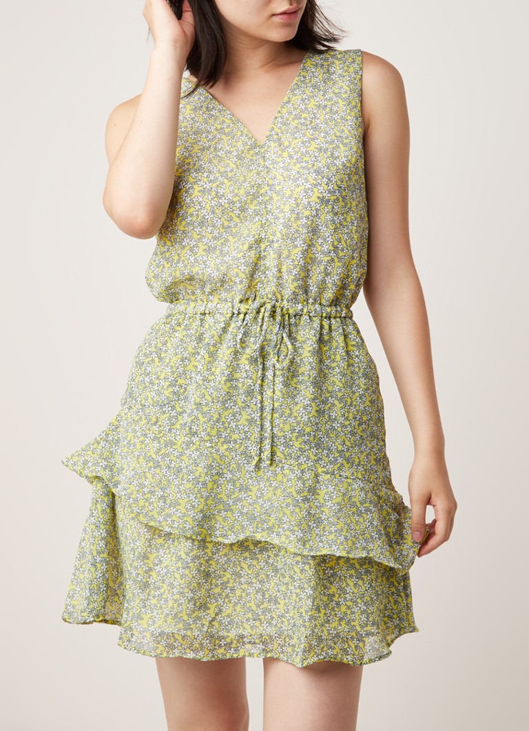 America Today Donna Mini Jurk Met Trekkoord En Volant Geel De