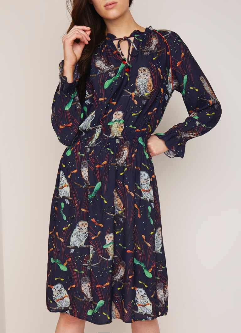Pom Amsterdam Lucky Charms Midi Jurk Met Dessin Donkerblauw De