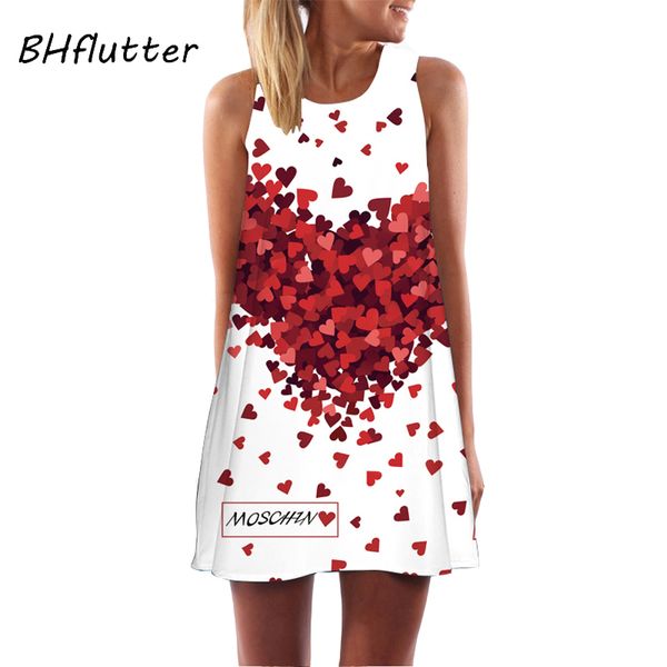 Bhflutter Vestidos Nieuwe Stijl Zomer Jurk Mouwloze Harten Print