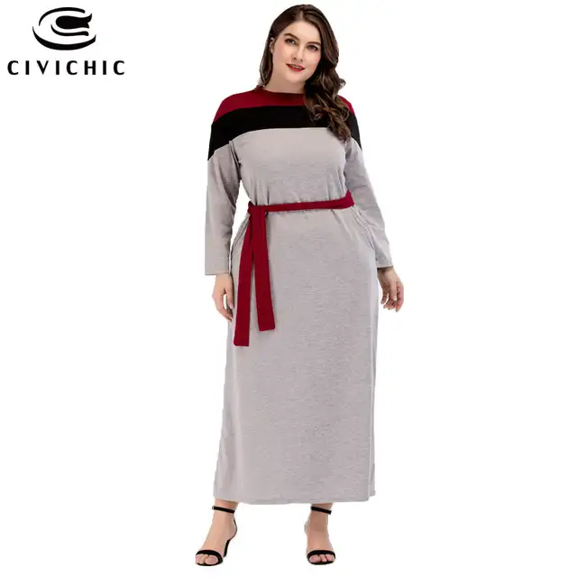 Civi Chic Autumn Maxi Dress Plus Size Long Jurk Fashion Striped