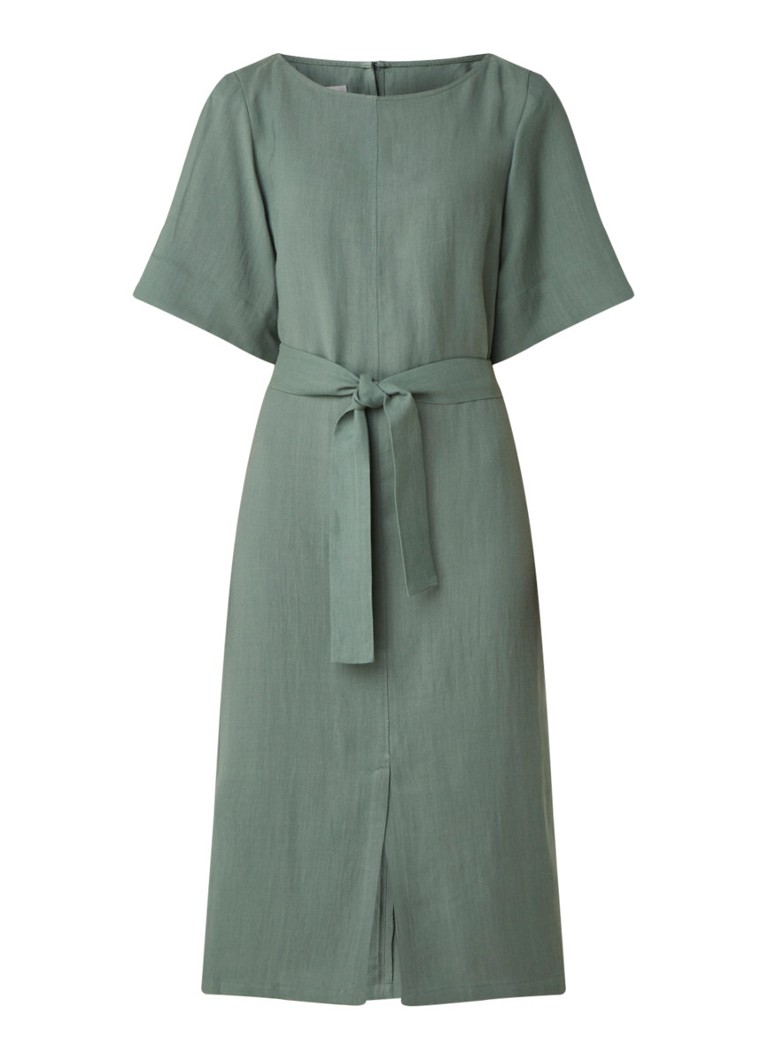 Humanoid Brit Midi Jurk In Linnenblend Olijfgroen De Bijenkorf