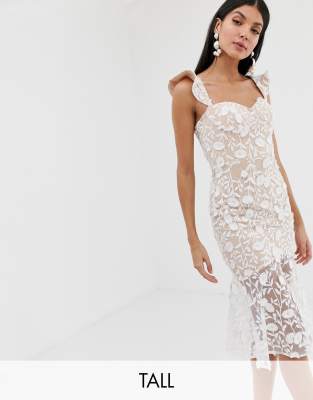 Jarlo Tall Midi Jurk Van Geborduurd Kant Met Blote Schouders Met