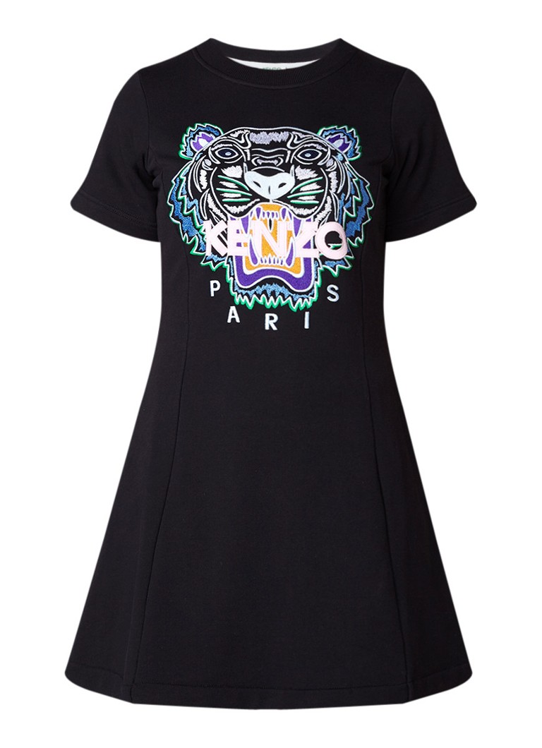 Kenzo Tiger Jurk Van Jersey Met Logoborduring Zwart De Bijenkorf