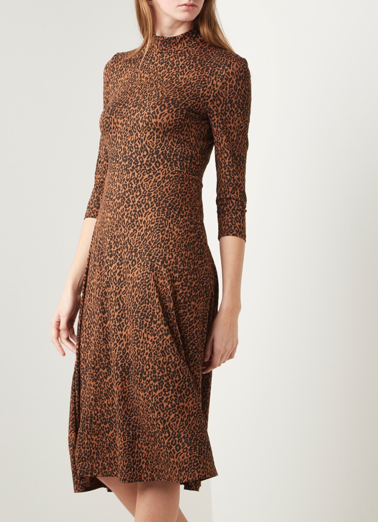 Set Midi Jurk Met Luipaardprint En Lage Col Bruin De Bijenkorf