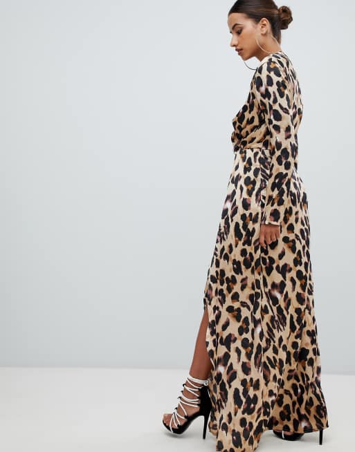 Missguided Lange Jurk Met Gedraaide Overslag In Luipaardprint Asos