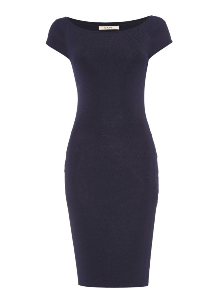 Nikkie Jolie Off Shoulder Jurk Met Korte Mouwen Donkerblauw De