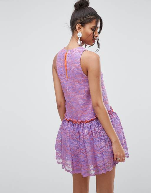 Asos Kanten Aangerimpelde Mini Jurk Met Lage Taille Asos