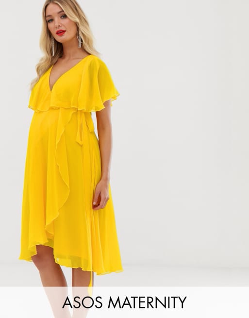 Asos Design Maternity Midi Jurk Met Lange Achterkant En Cape Op