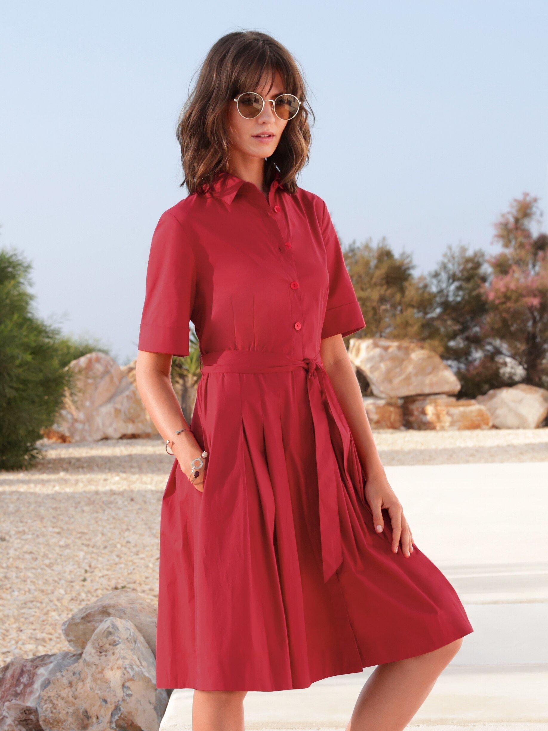 Peter Hahn Jurk Met Overhemdkraag En Korte Mouwen Rood