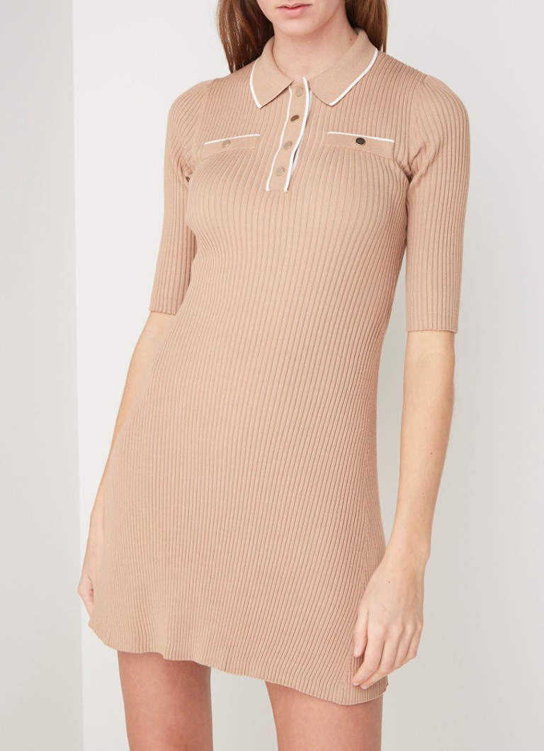 Maje Relly Ribgebreide Mini Jurk Met Polokraag Camel De Bijenkorf