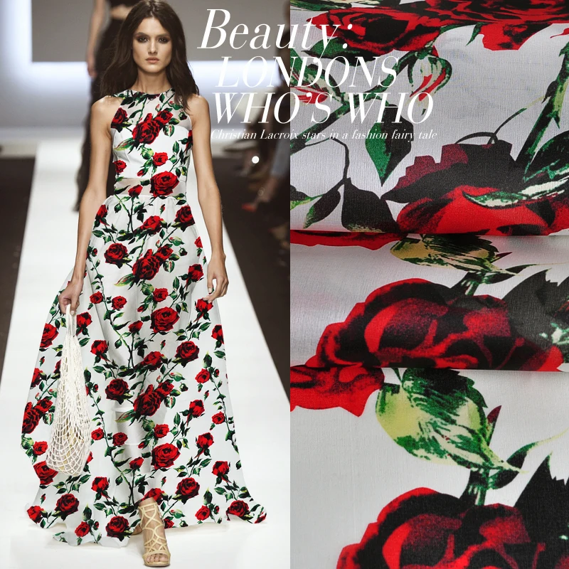 Ougene Zijde Jurk Stof Europese Satijn Rood En Rode Rozen Gratis