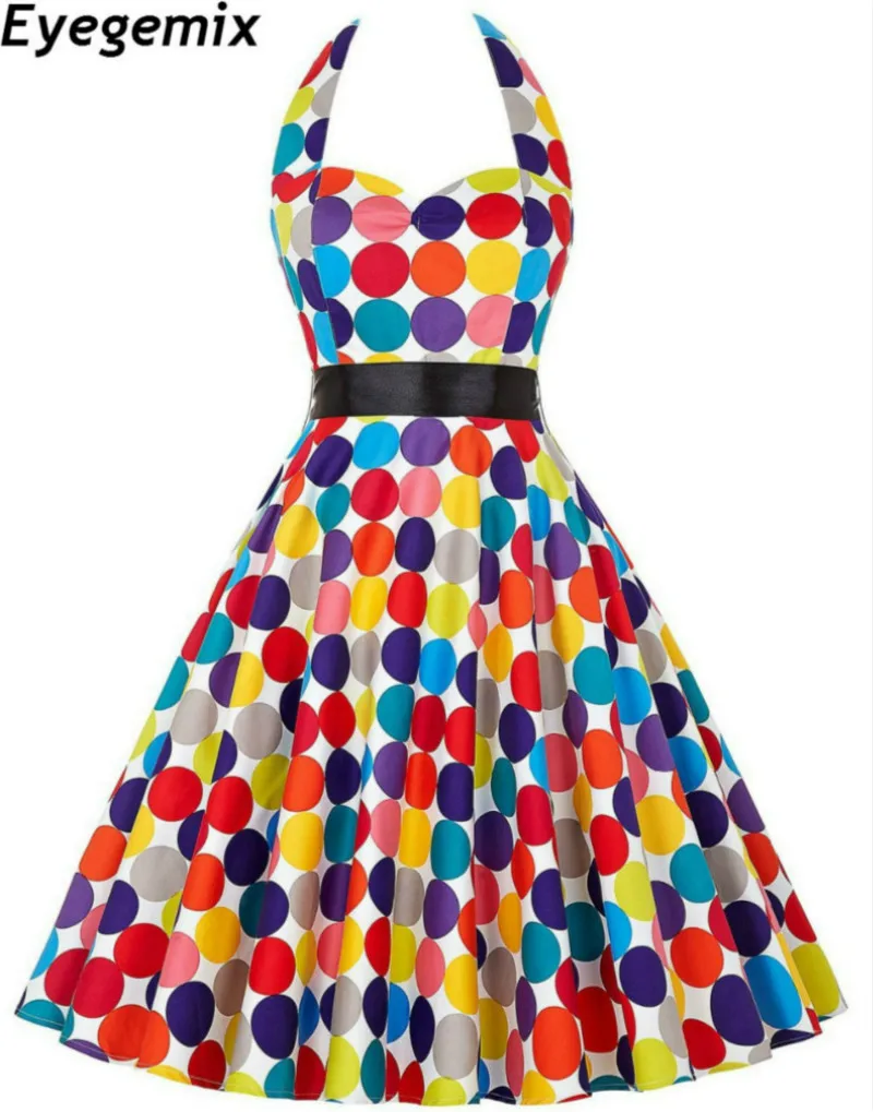 Kleurrijke Stippen Print Zomer Jurk Casual Halter Jurk Vrouwen